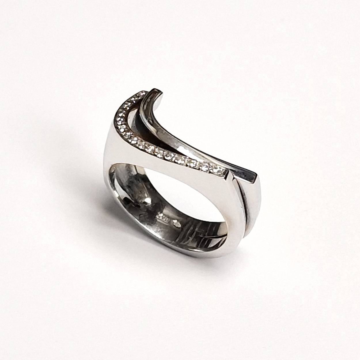 Een prachtige artistiek ring met de hand gemaakt uit wit goud met 16 briljant geslepen diamanten