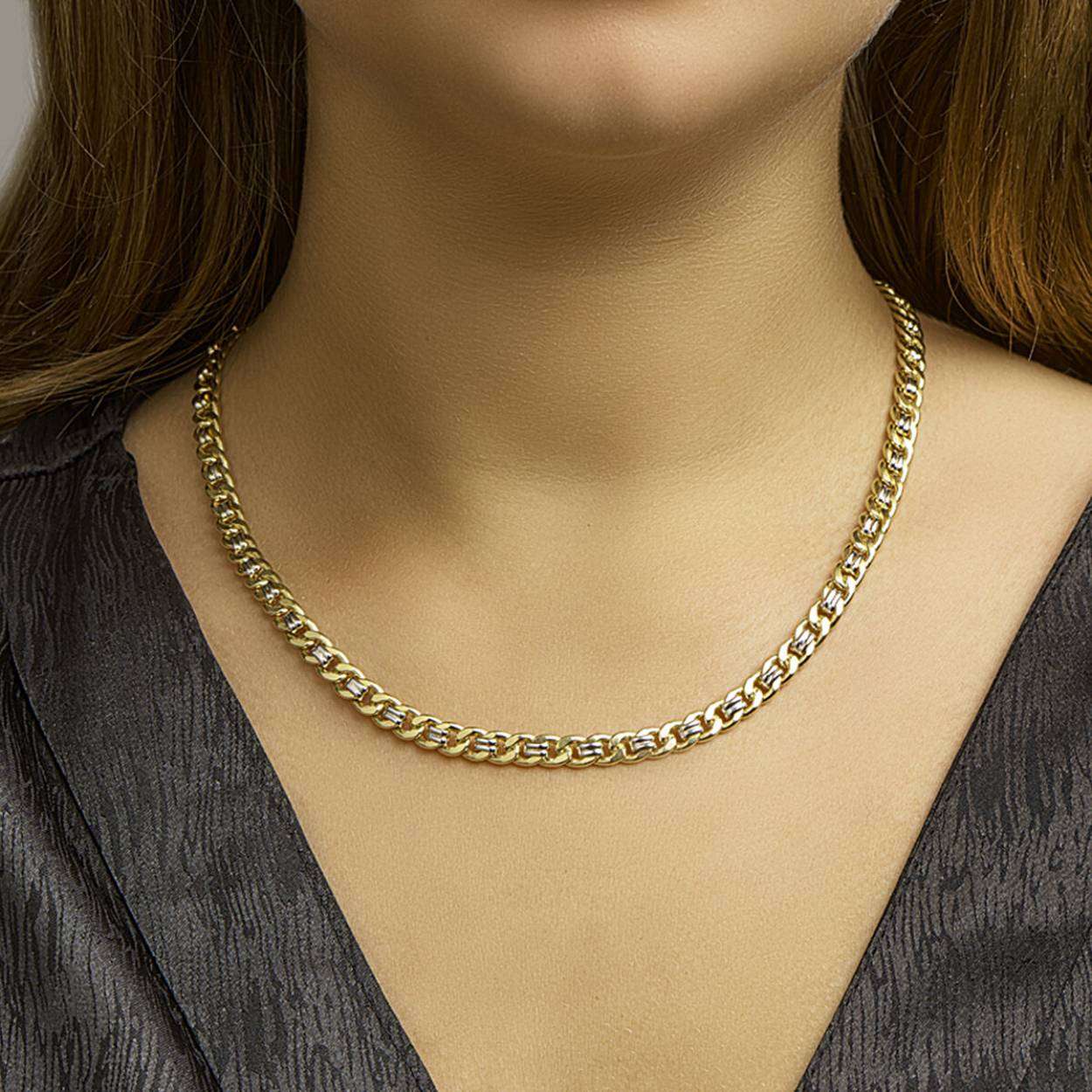 Een gouden armband bicolor met een kern van zilver.