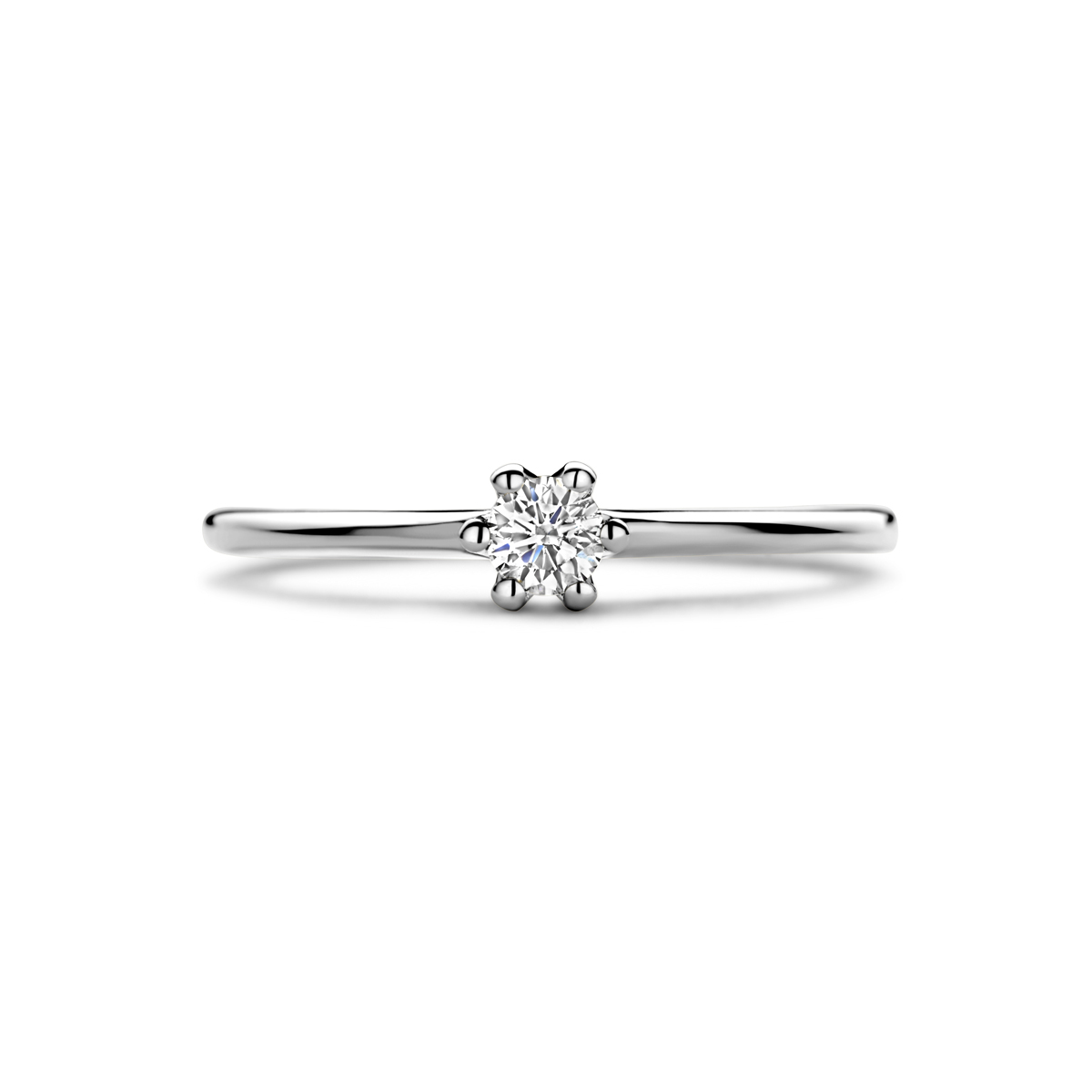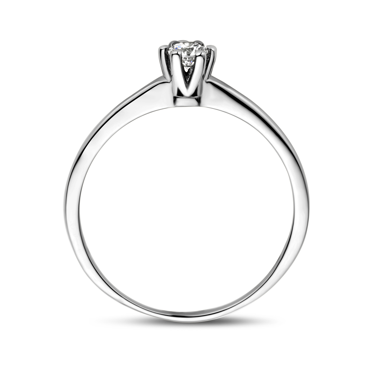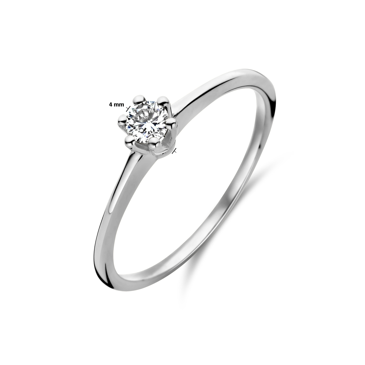 14k Witgouden ring uitgevoerd met een 0.15 ct briljant geslepen diamant. De ring heeft een breedte van 4 mm.