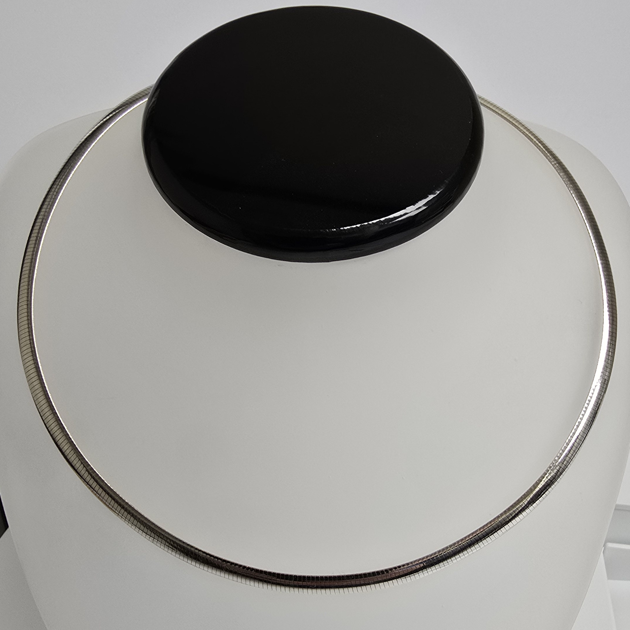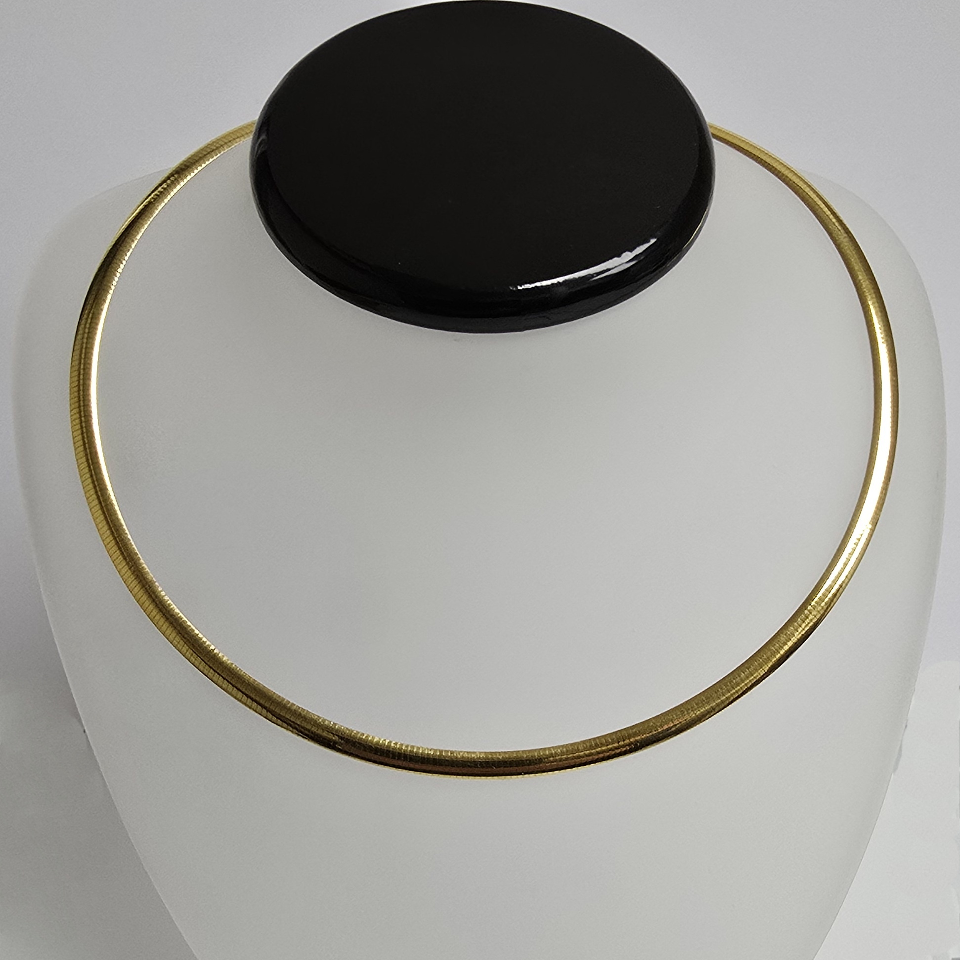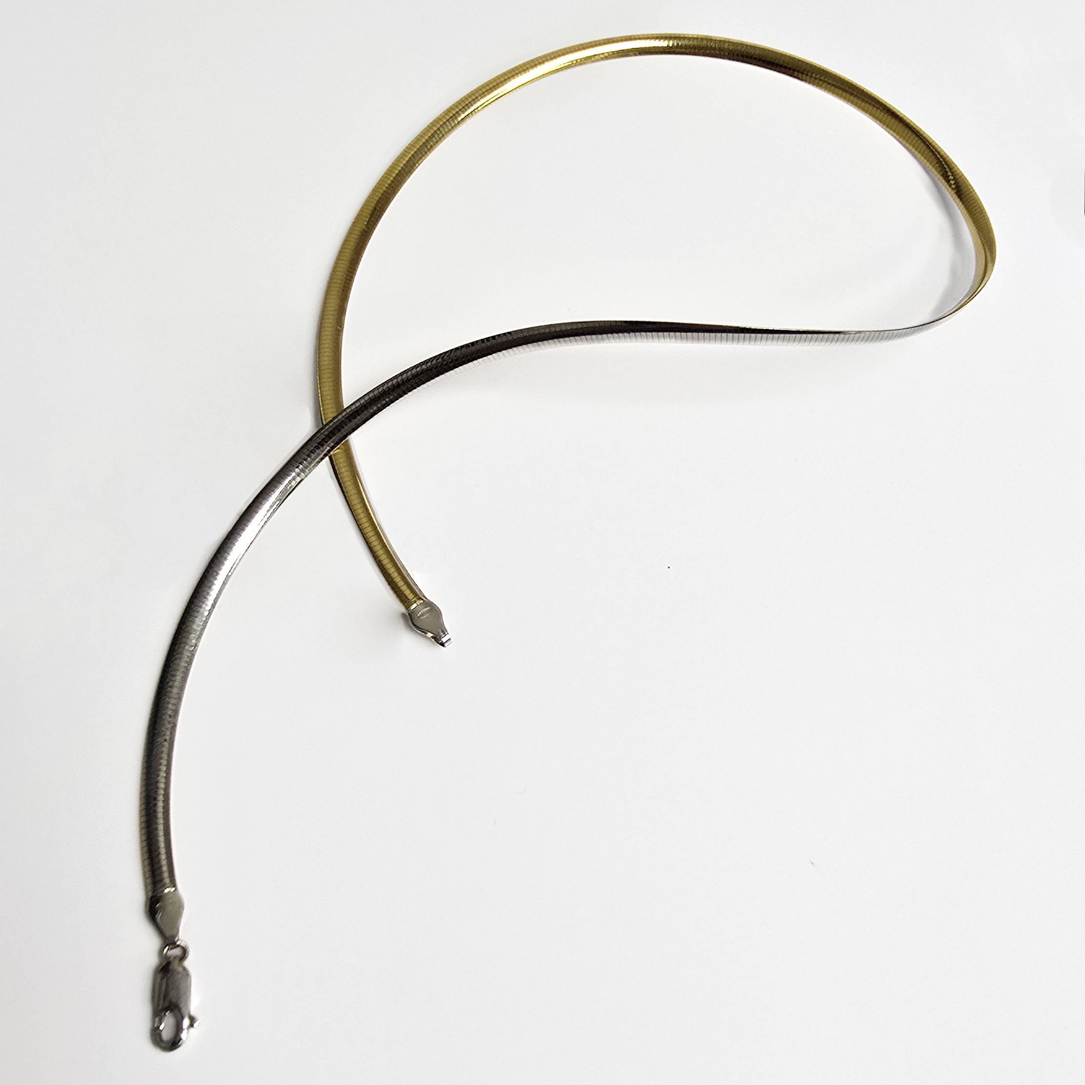 Platte Omega choker tweezijdig draagbaar 1 zijde witgoud andere zijde geelgoud
