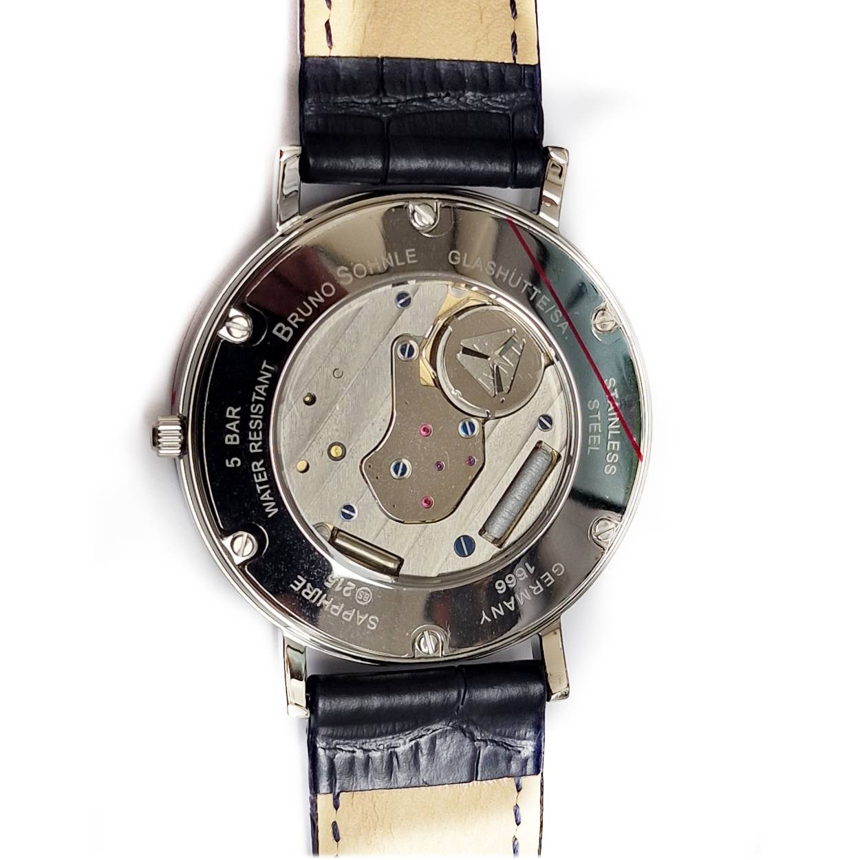 Bruno Söhnle hph München 1 rond bewerkte plaat datum leren band open achterzijde