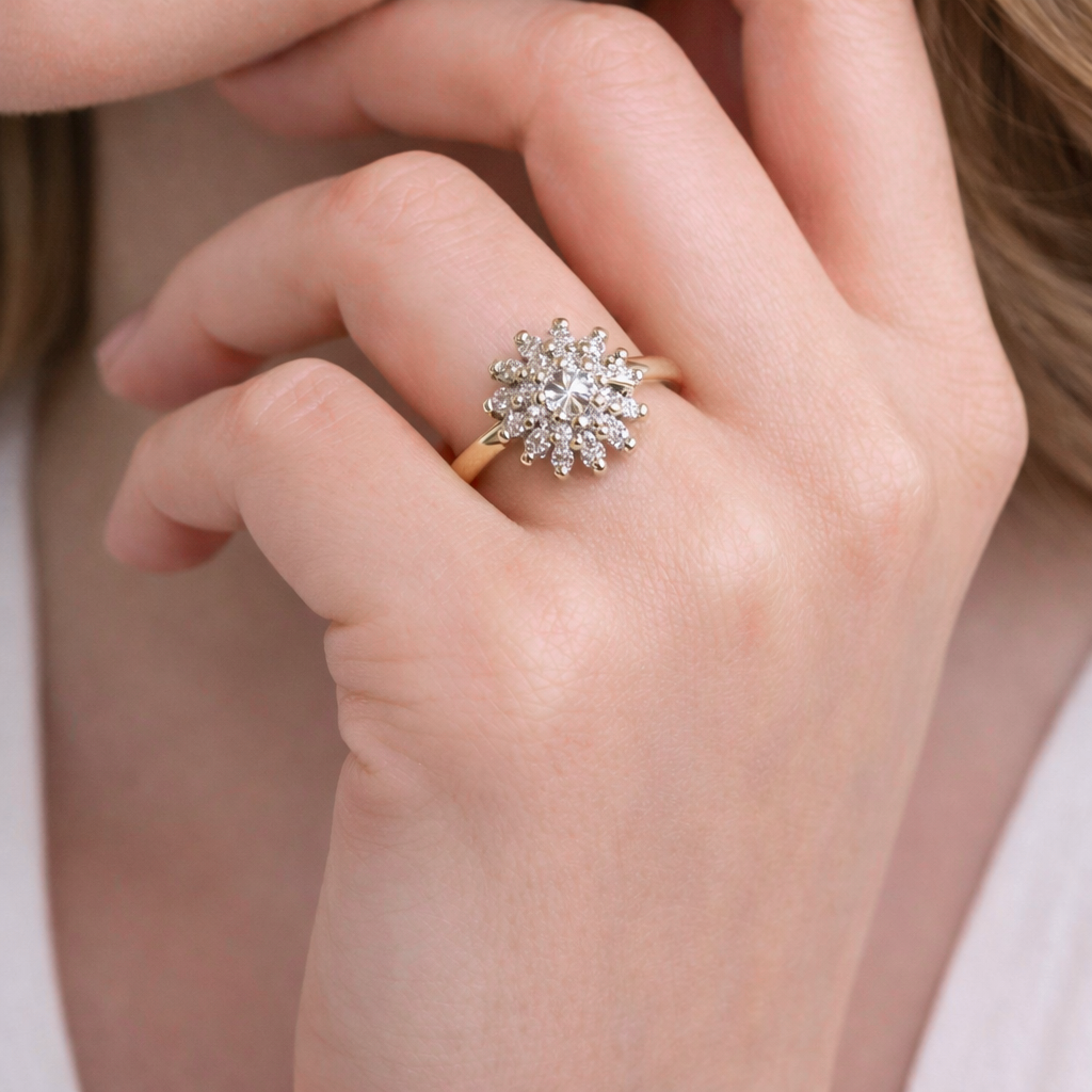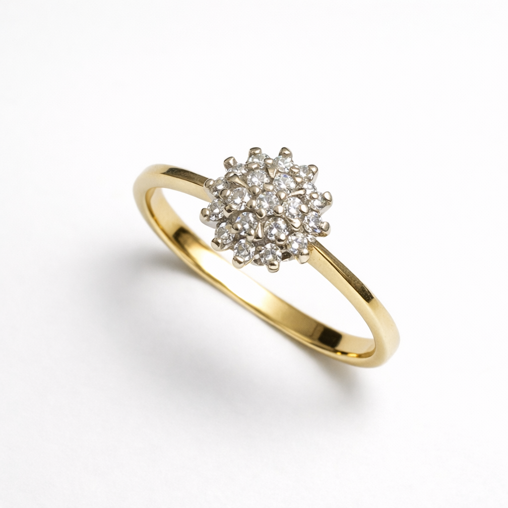 Dubbel entourage geel gouden ring met 0.35 briljant