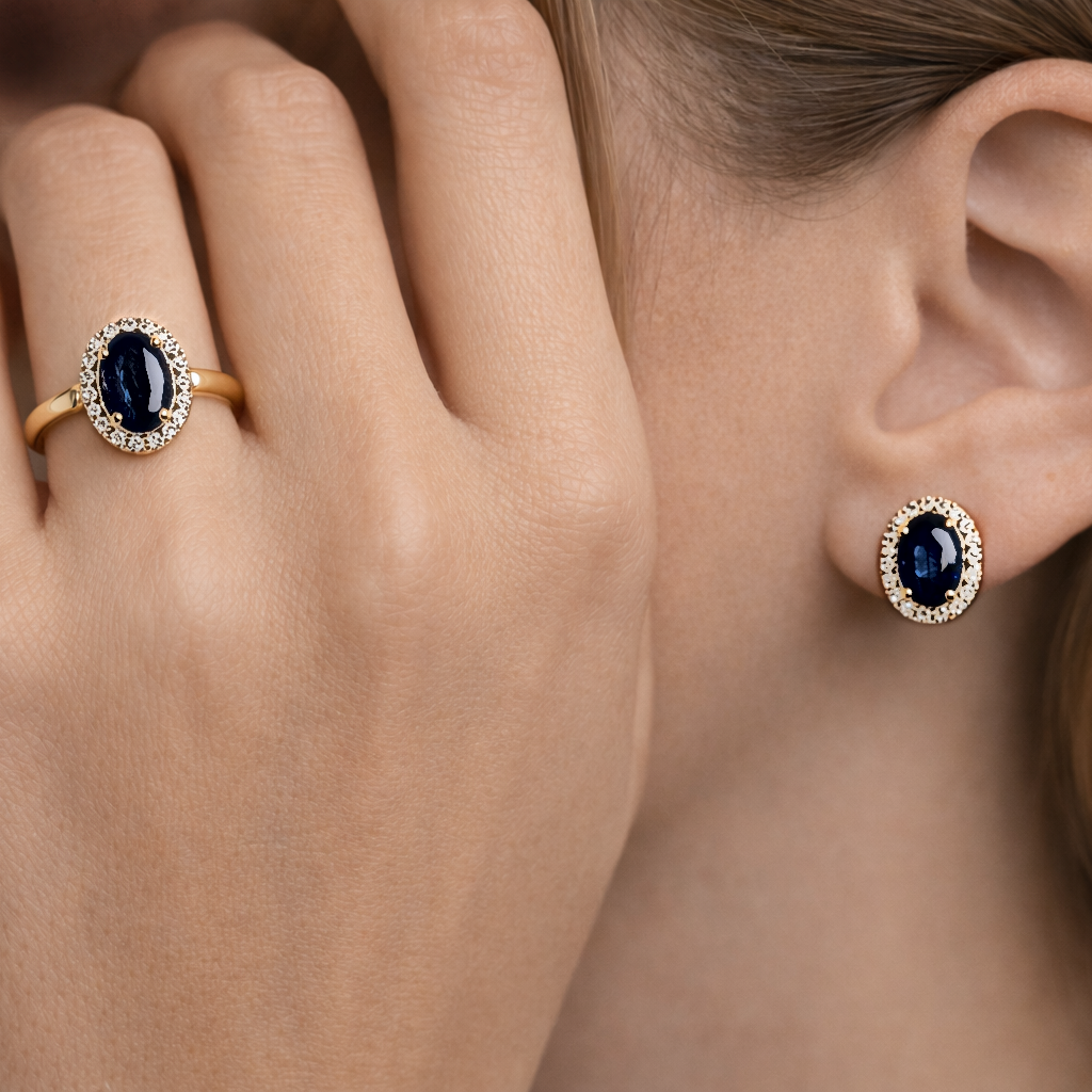 Collier met prachtige entourage hanger plus collier met blauwe saffier en 20 LabGrown diamanten totaal gewicht 0.40ct Ook als set leverbaar