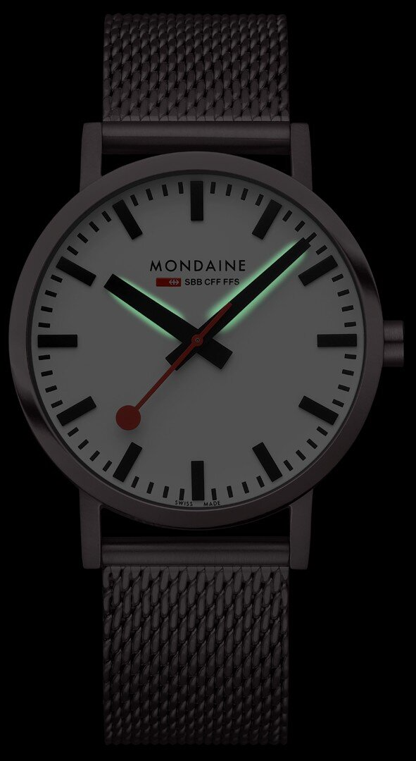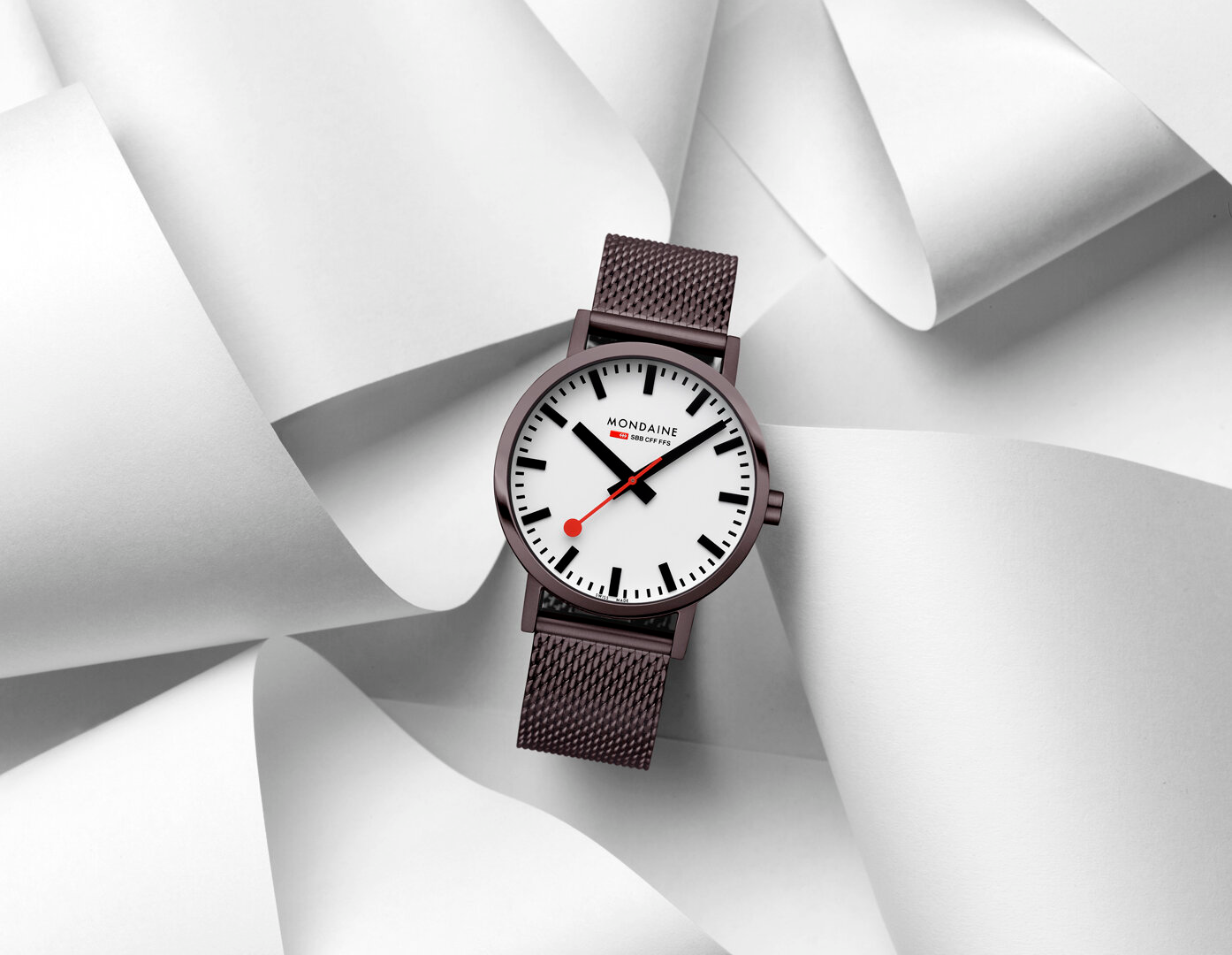 Van het merk Mondaine , bronzen kast en mesh band in dezelfde kleur.