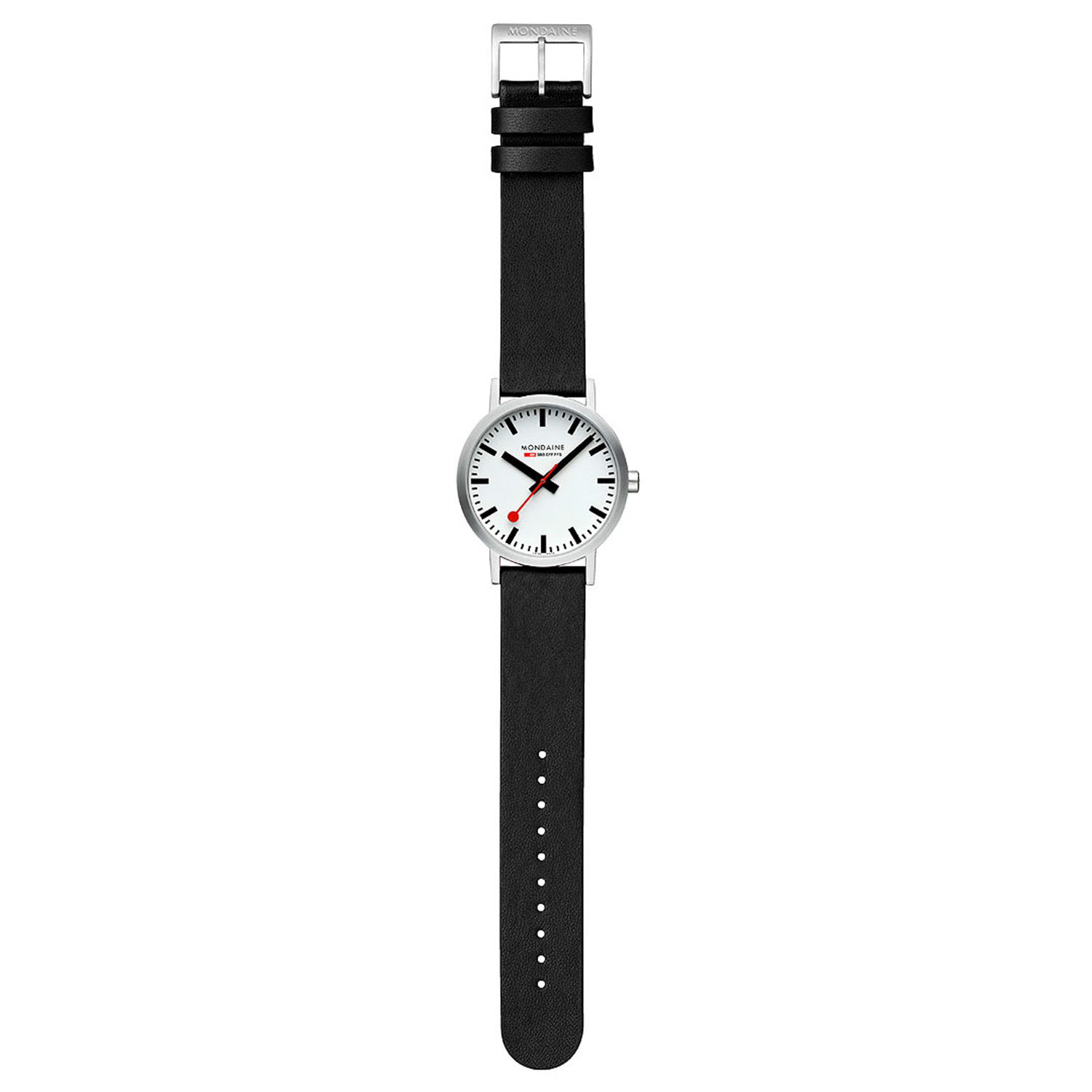 MONDAINE M660.30360.16SBB - POLSHORLOGE - LEER - ZWART -Classic 40 mm mat