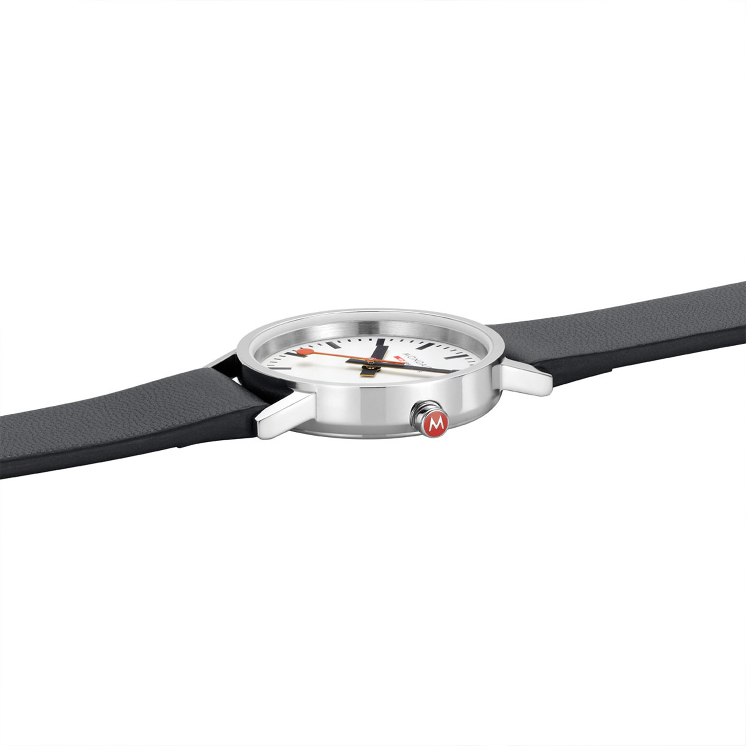 The Official Swiss Railway Watch. Gebaseerd op de officiële stationsklok van de Zwitserse spoorwegen, is 30 jaar geleden de horlogelijn onder het merk Mondaine opgezet. Zwitserse kwaliteitsuurwerken, net zo punctueel als de Zwitserse treinen. Een echte design klassieker met een unieke wijzerplaat en de wereldberoemde rode secondewijzer met bolletje. Herkenbaar uit duizenden.