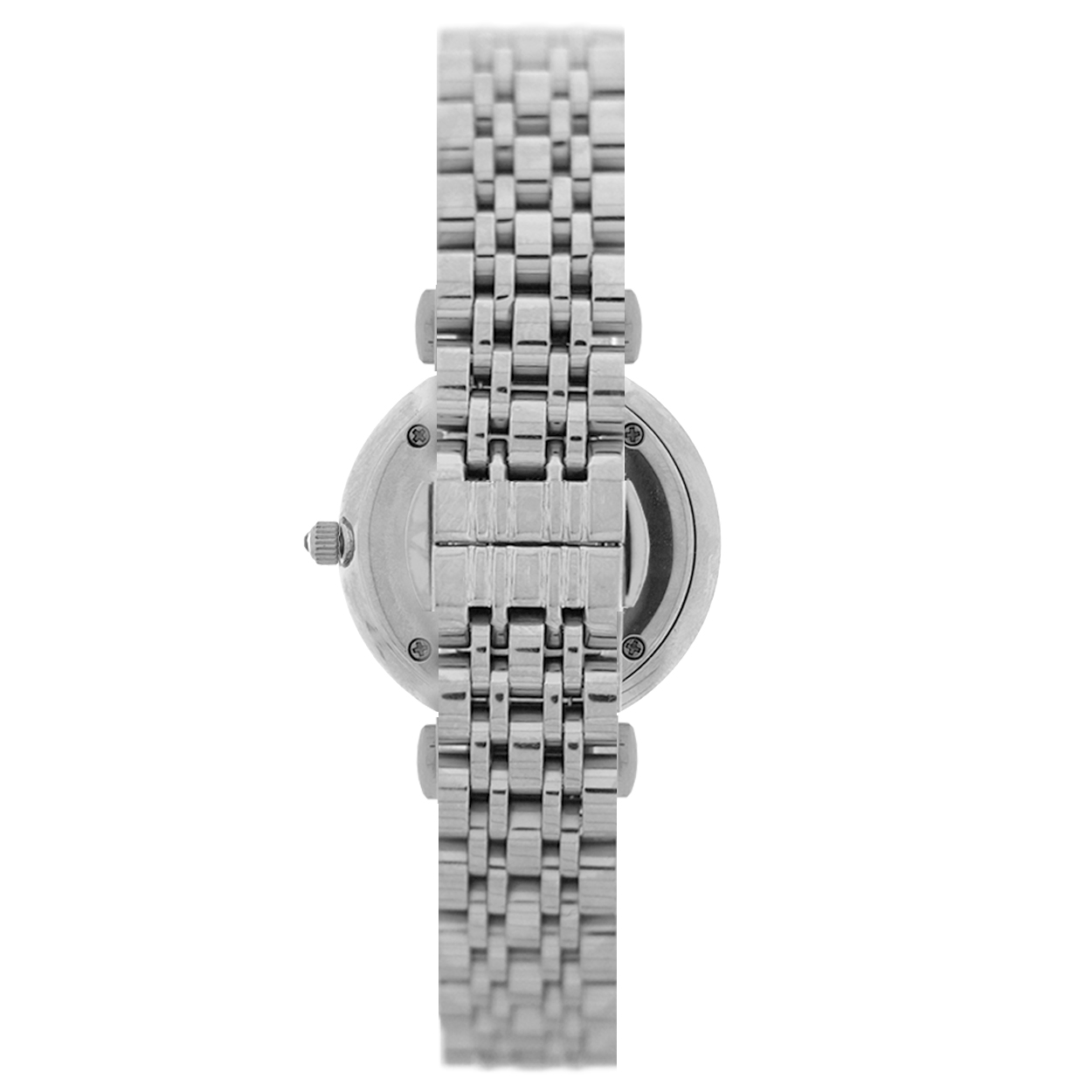 - wijzerplaat blauw parelmoer met zilverkleurige index en romeinse  cijfers