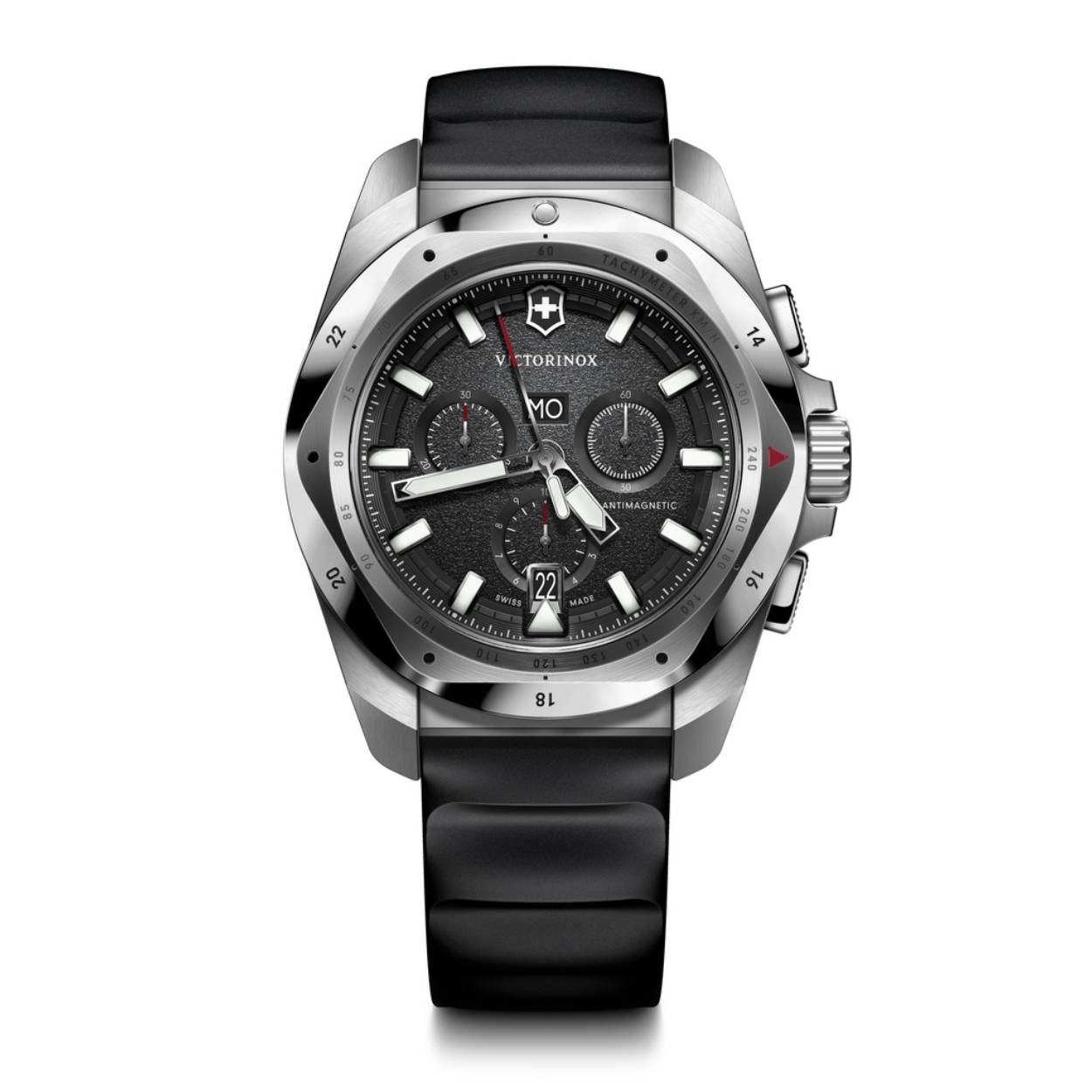 I.N.O.X., ø43, silver stainless steel case, silver stainless steel bezel, black dial, black rubber strap